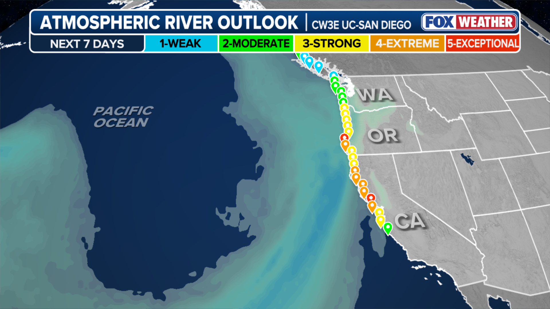 The Pacific Northwest will face an even more powerful atmospheric river that is set to slam into the region beginning Friday. Rain totals of 3-5 inches are forecasted up down the coast from Northern California to the Washington-Canada border.