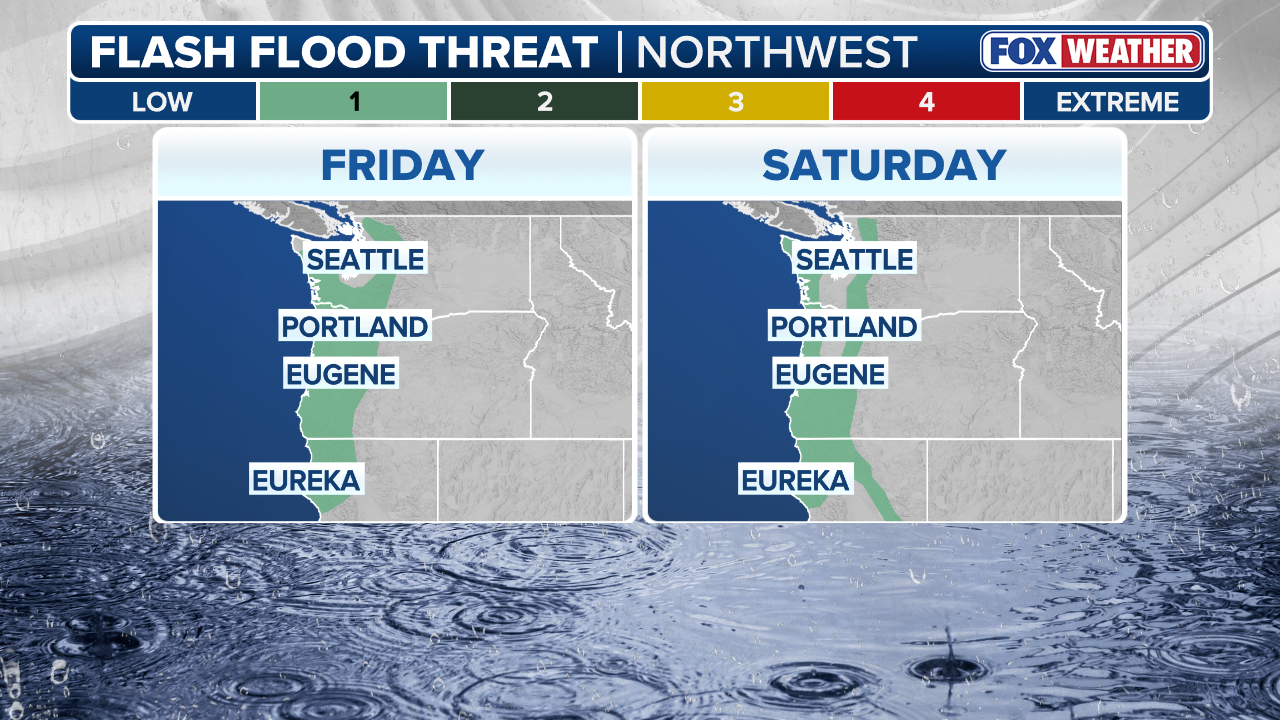With so much rain comes the threat of flooding. A Level 1 out of 4 flash flood threat has been issued by NOAA's Weather Prediction Center for the Northern California coast, coastal Oregon and parts of western Washington for Friday and Saturday.