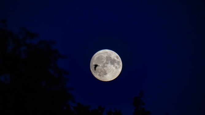 Falmouth, England - JULY 12: A seagull flies across the rising supermoon on July 12, 2022 in Falmouth, Cornwall, England. (Photo by Hugh R Hastings/Getty Images)