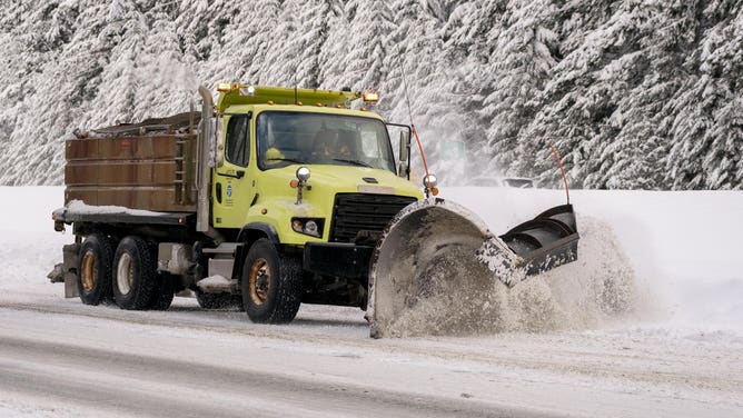 Image 14 of 23A snow plow on Interstate 90 near Snoqualmie Pass, Washington, U.S., on Tuesday, Jan. 4, 2022. Snoqualmie Pass had the highest snowfall in 20 years as of Jan. 3, according to the Washington State Department of Transportation (WSDOT). Photographer: David Ryder/Bloomberg via Getty Images ( )