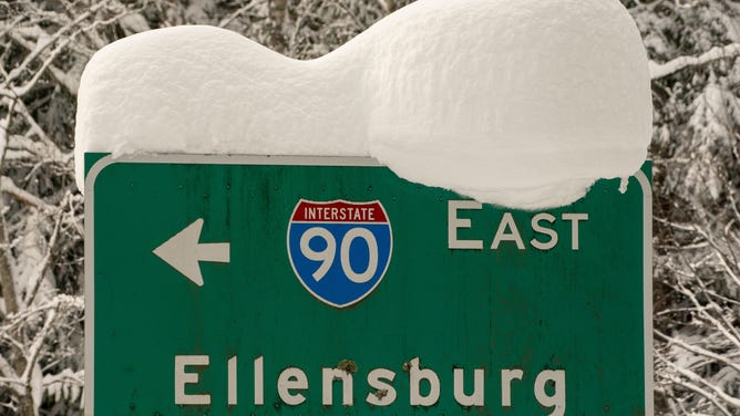 Image 3 of 23Snow piled on top of on a sign for Interstate 90 near Snoqualmie Pass, Washington, U.S., on Tuesday, Jan. 4, 2022. Snoqualmie Pass had the highest snowfall in 20 years as of Jan. 3, according to the Washington State Department of Transportation (WSDOT). Photographer: David Ryder/Bloomberg via Getty Images ( )