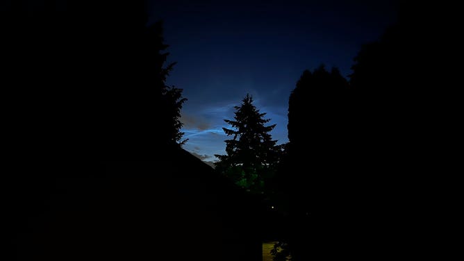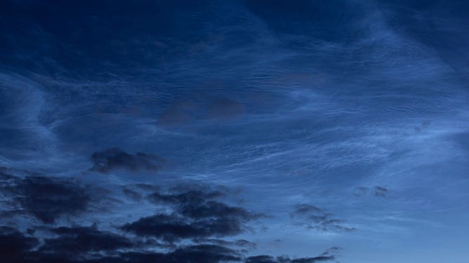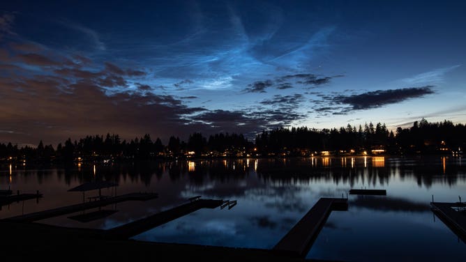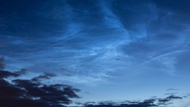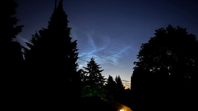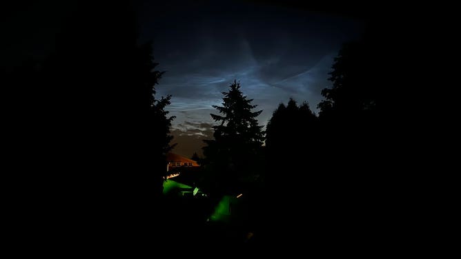 "I was up and waiting for them this morning at 3 a.m., when they usually show up this time of year in Washington," said photographer Jeff Knesebeck, who spotted the clouds from Auburn, Washington. "They are beautiful wispy electric blue luminous clouds that are in space, and are easily seen with the unaided eye."
