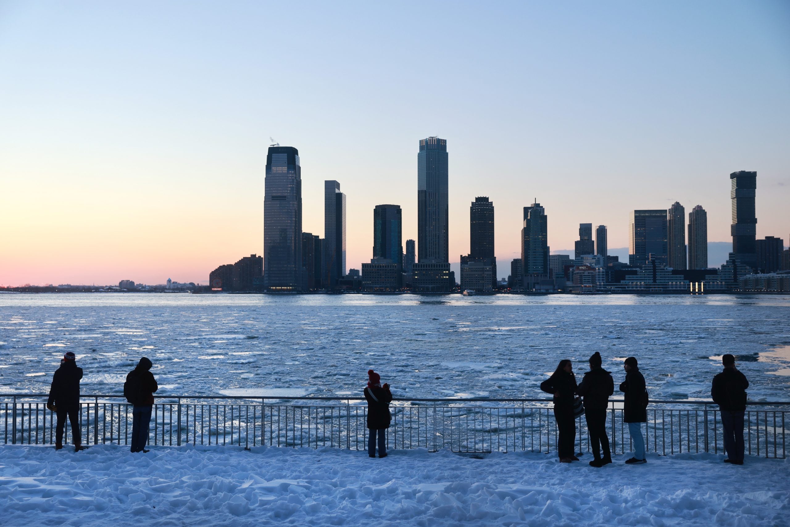 NEW YORK, NEW YORK - JANUARY 29: People watch as ice floats cover part of the Hudson River along the Manhattan shoreline as New York City experiences frigid temperatures following a winter storm over the weekend on January 29, 2026, in New York City. New York received up to a foot of snow in a winter storm that swept through large parts of the country, resulting in numerous deaths, power outages, and accidents.