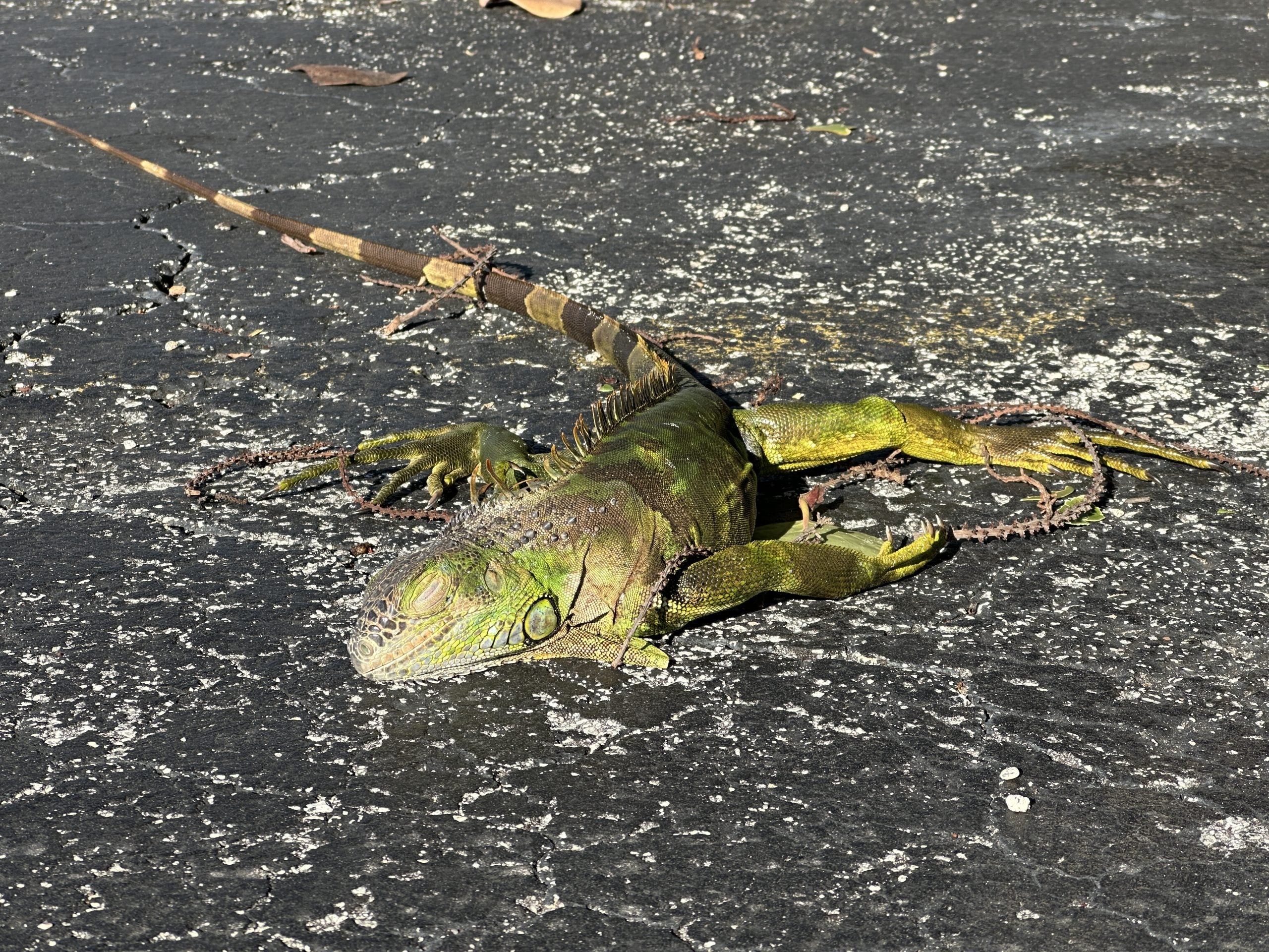 A cold-stunned iguana on the ground in North Bay VIllage, Florida on Feb. 1, 2026.