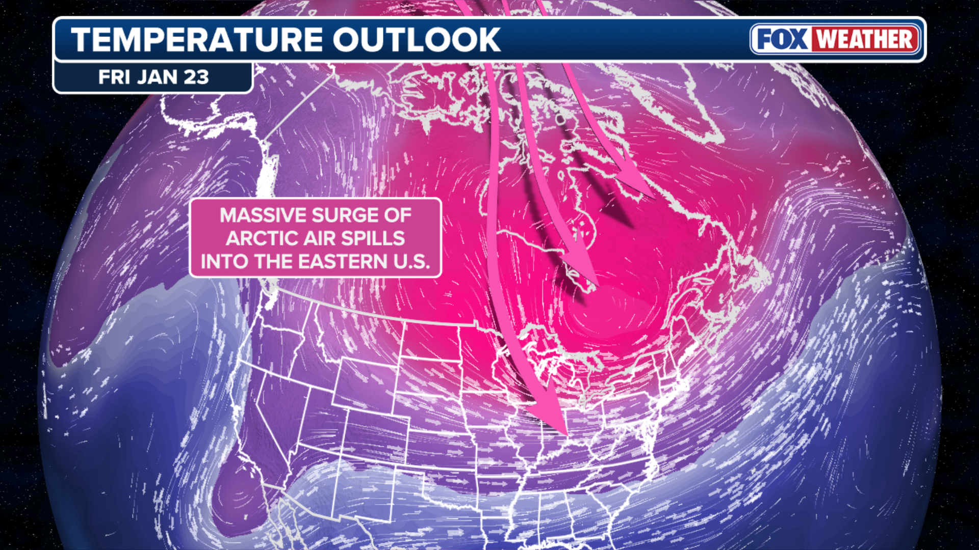 The powerful arctic high will be centered north of the U.S. and will funnel in extremely dense, cold air southward into the lower 48.