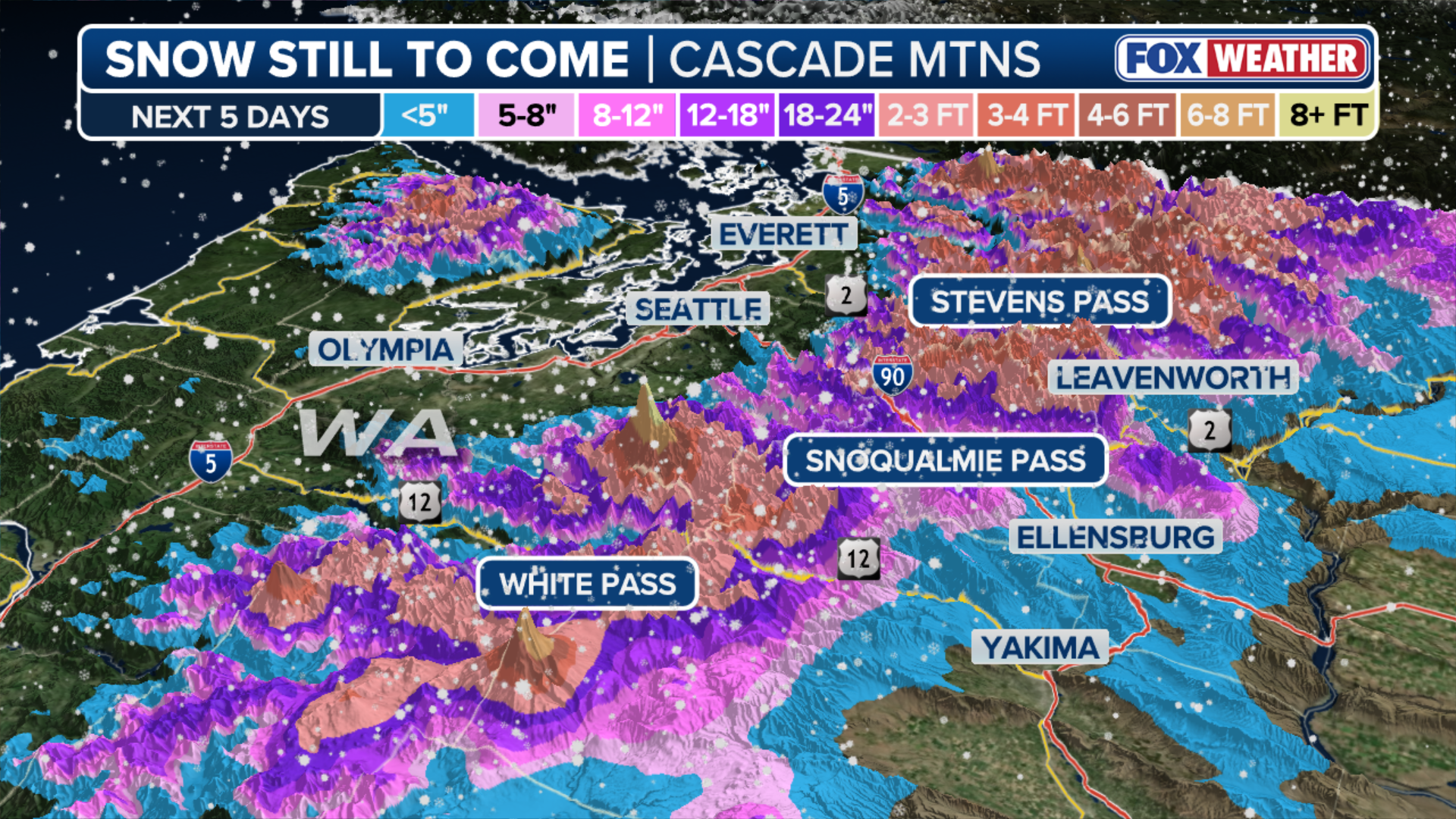 Winter Weather Advisories are now in effect across the southern Cascades through Wednesday, with over a foot of snow likely at higher elevations and Blizzard Warnings have been issued across the higher terrain of the northern Cascades as well as the Olympic Mountains.