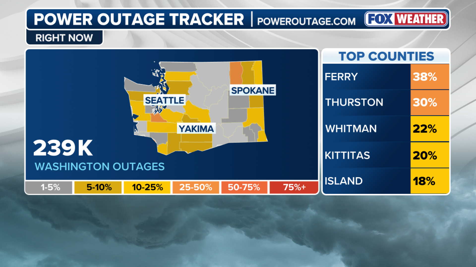 Powerful wind gusts compounded the existing power outages caused by the ongoing flooding across Washington early Wednesday.