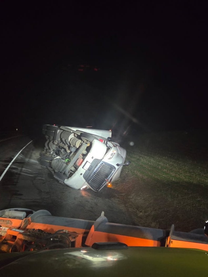 Powerful wind gusts knock over semi-truck on US 195 in Colton, Washington on Wednesday morning.