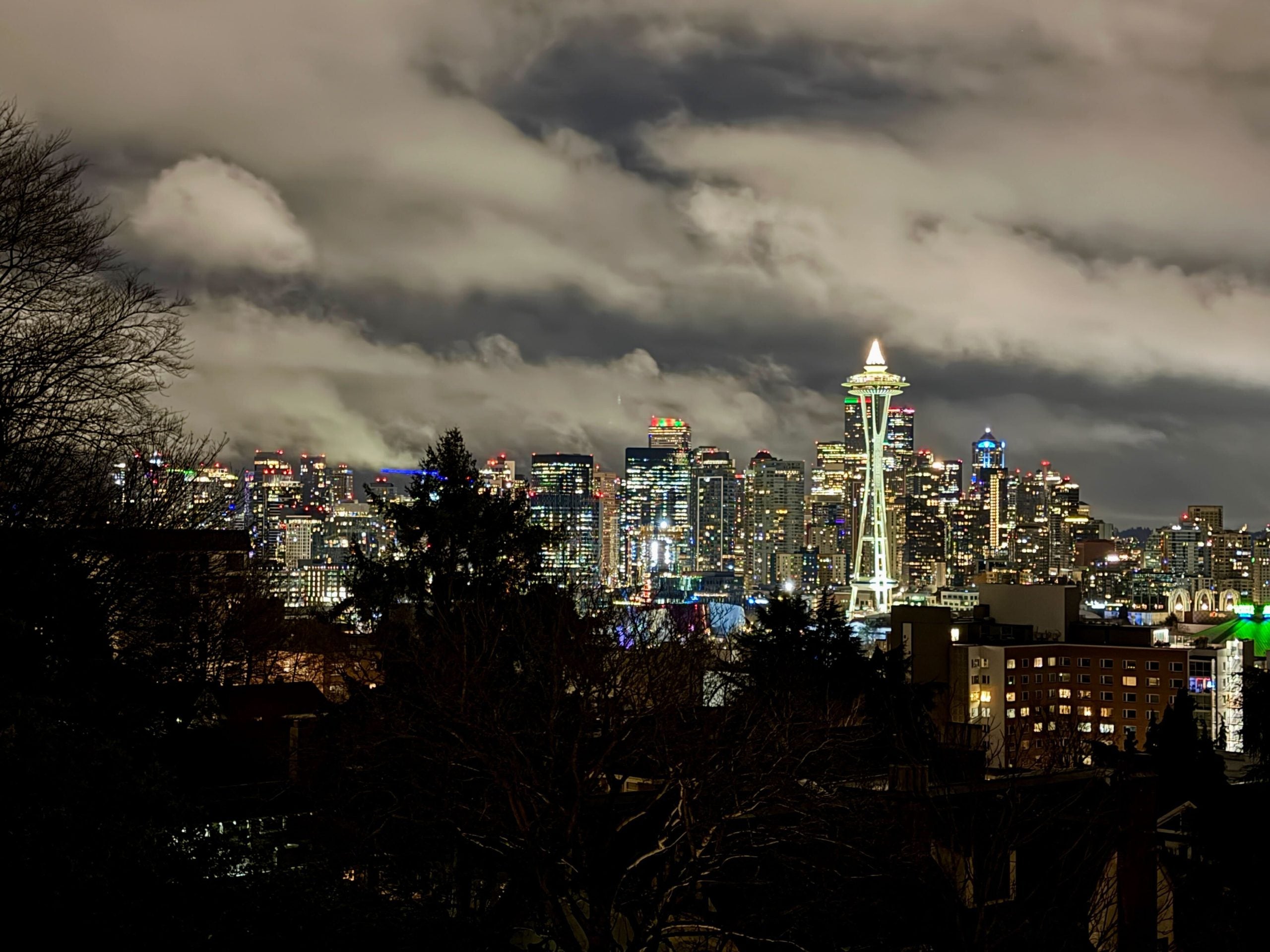 Ominous clouds loom over Seattle on Tuesday, Dec. 16, 2025, as latest atmospheric river begins to intensify.
