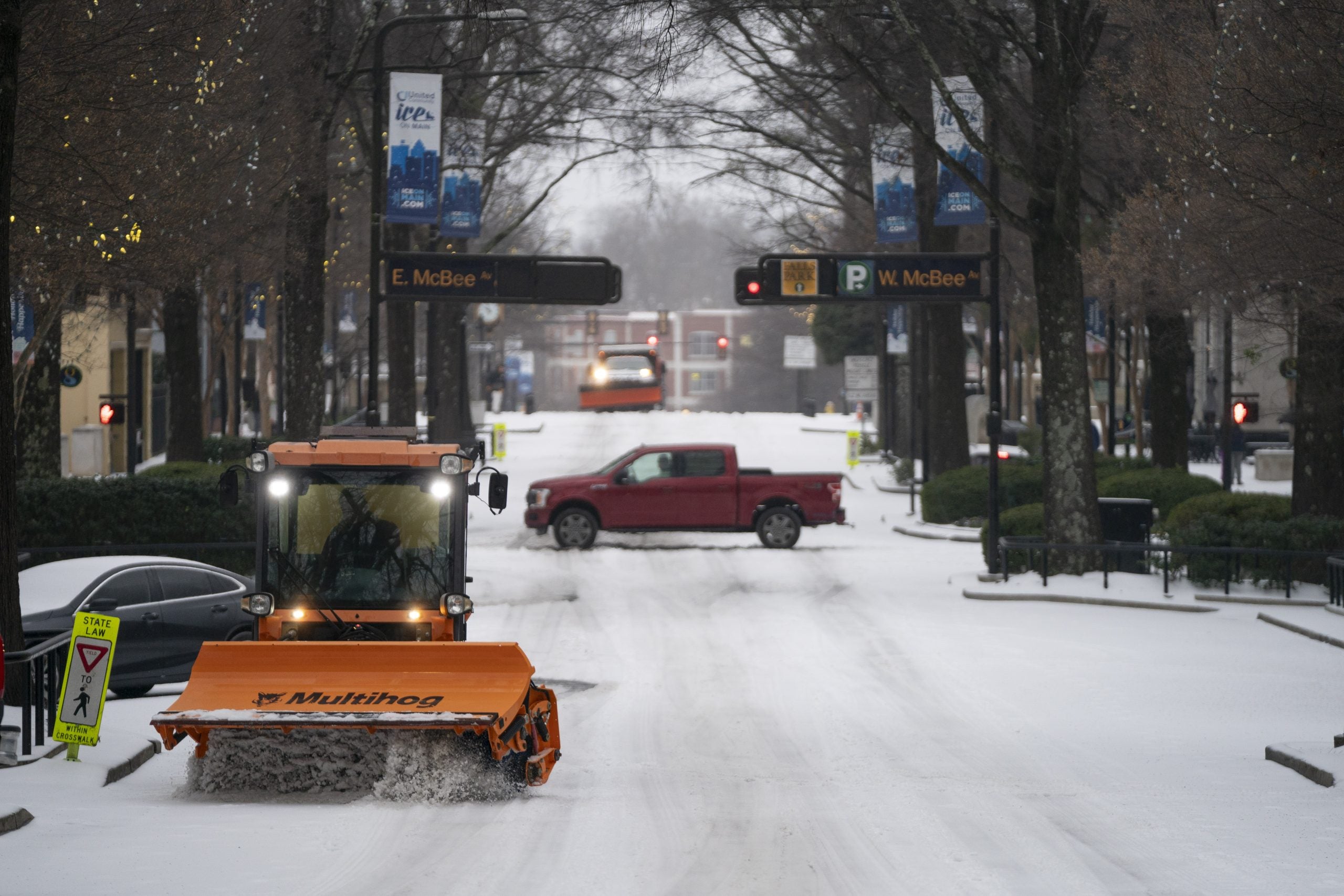 GREENVILLE, SOUTH CAROLINA - JANUARY 25: Crews work to keep Main Street clear as sleet falls January 25, 2026 in Greenville, South Carolina. A massive winter storm is bringing frigid temperatures, ice, and snow to millions of Americans across the nation. (Photo by Sean Rayford/Getty Images)