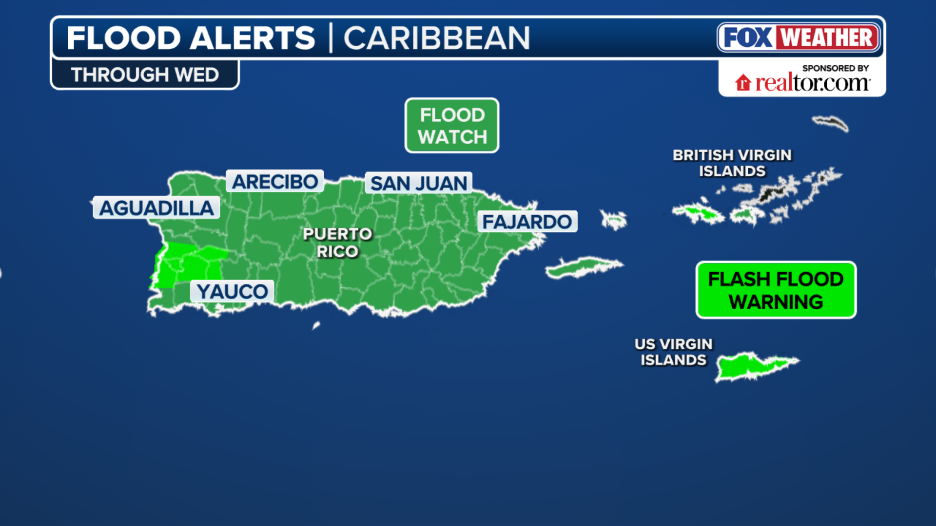 Flash Flood Warnings extend across Puerto Rico and the U.S. and British Virgin Islands, where some areas have already seen several inches of rain.