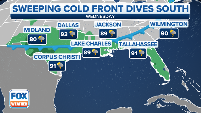 The system producing the wet weather is the same front that triggered historic flooding in Mississippi and caused at least one death in Texas over the past week.