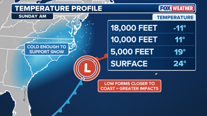FOX Weather Meteorologist Jane Minar analyzes the potential for snow across a corridor in the Southeast that could bring flakes from areas of Florida to North Carolina.