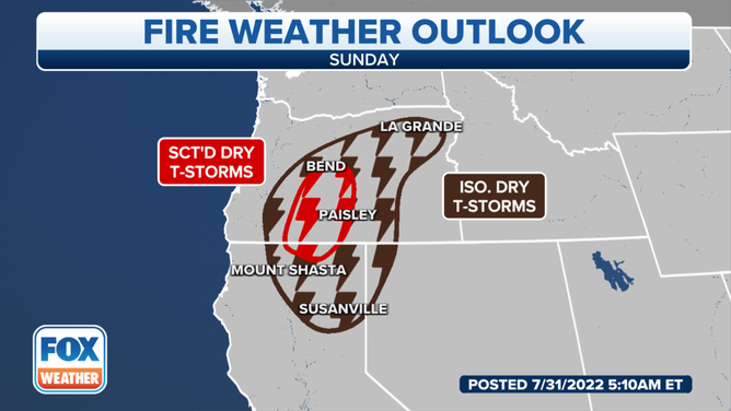 Forecasters say that an increased number of thunderstorms expected in the region combined with the critically dry vegetation increases the chances for fire weather conditions.