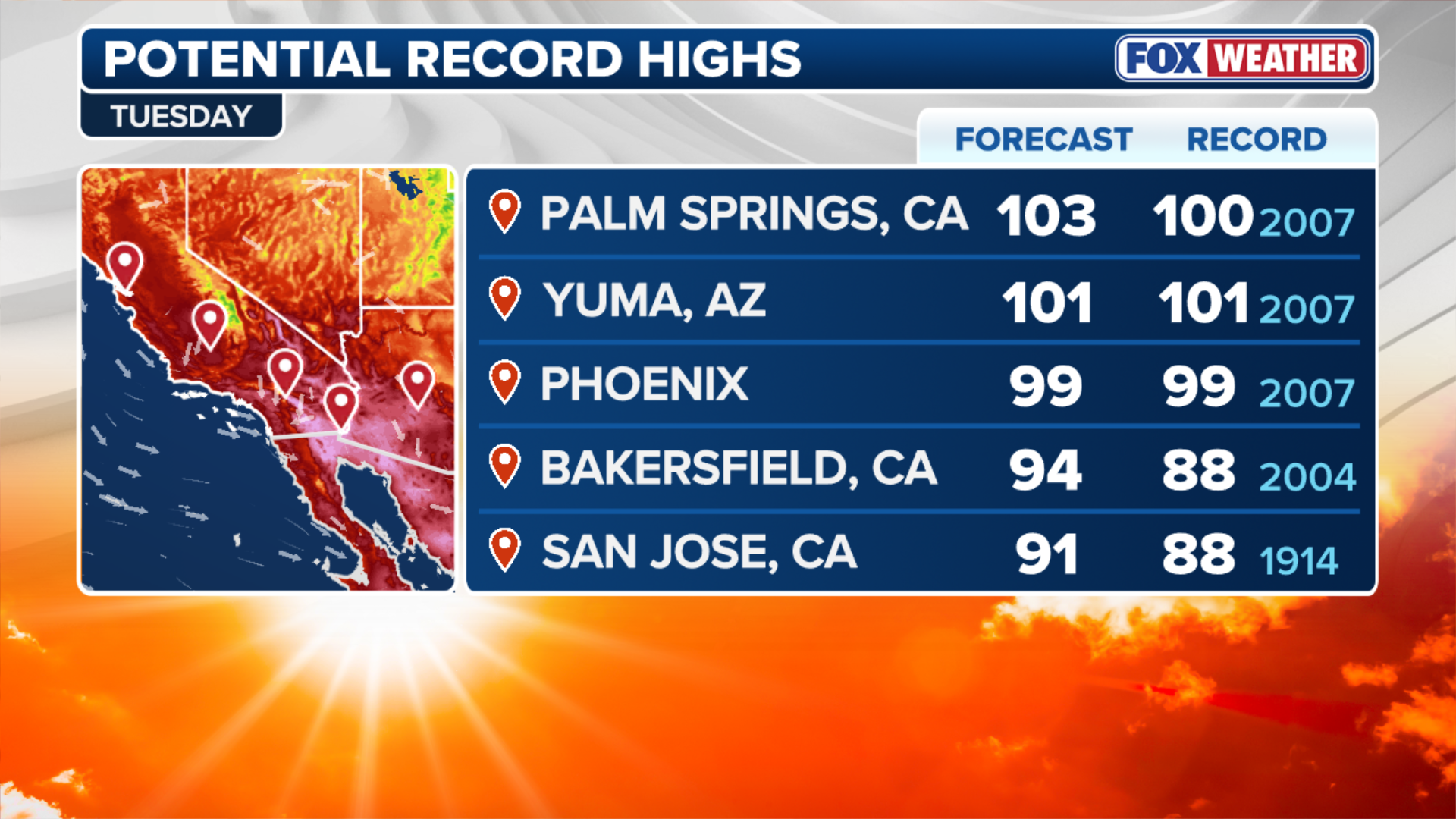 Record heat eyes Southwest, with triple-digit temps possible