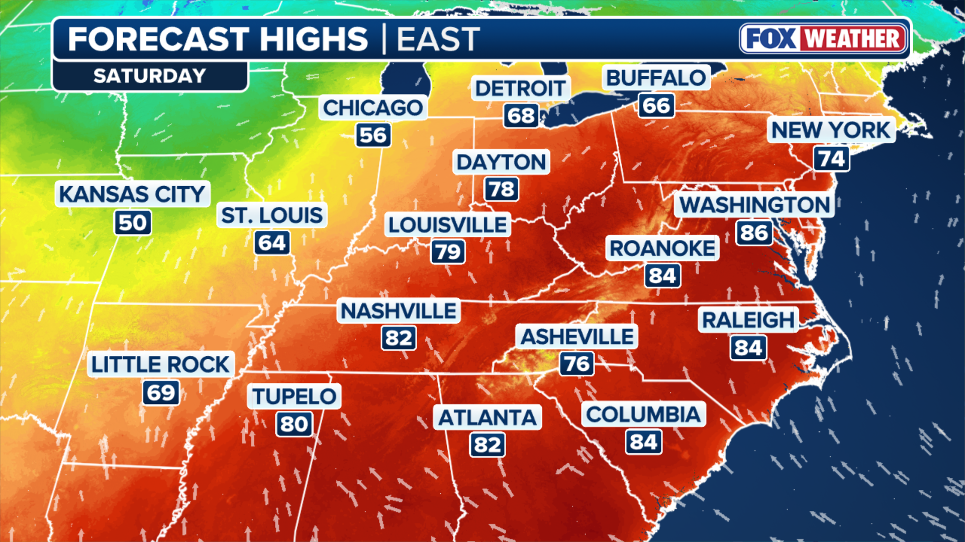 Huntington, West Virginia is also forecast to approach 90 degrees.