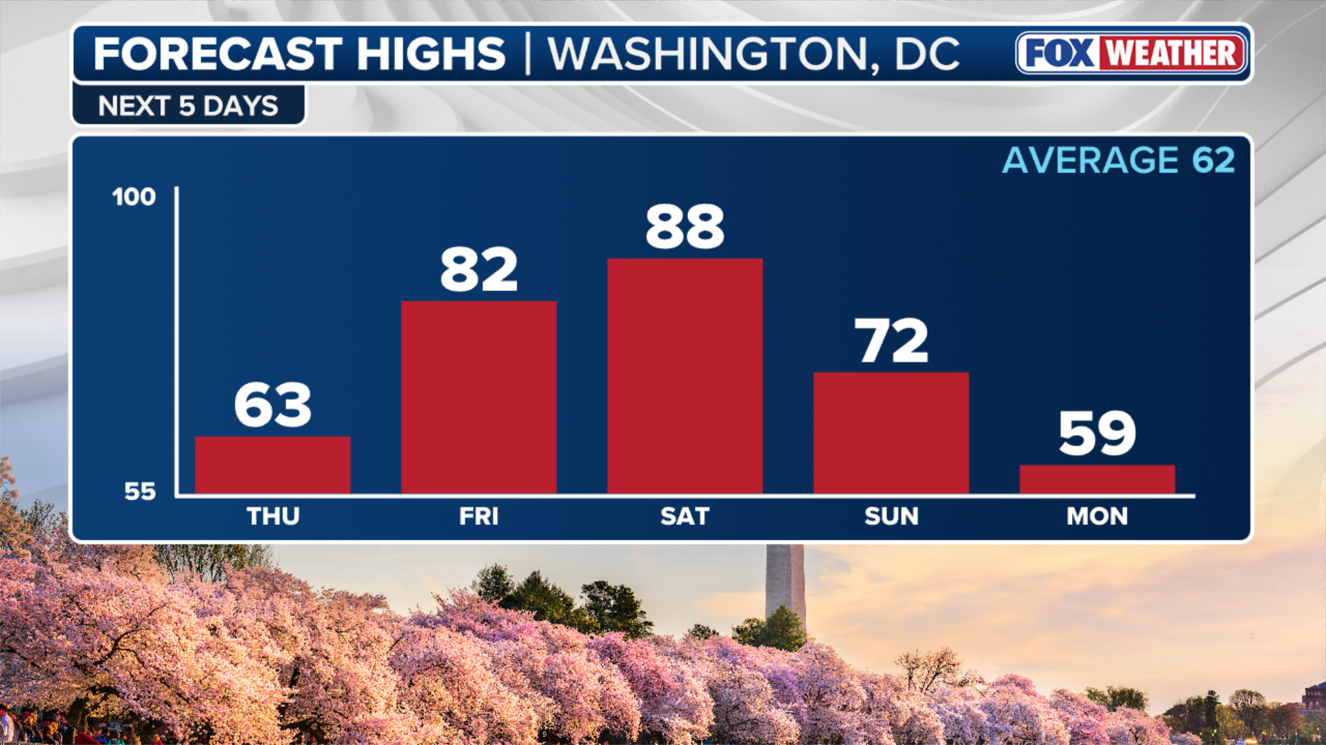 Washington, D.C. is expected to reach 88 degrees, surpassing the daily record of 85 degrees set back in 2011.