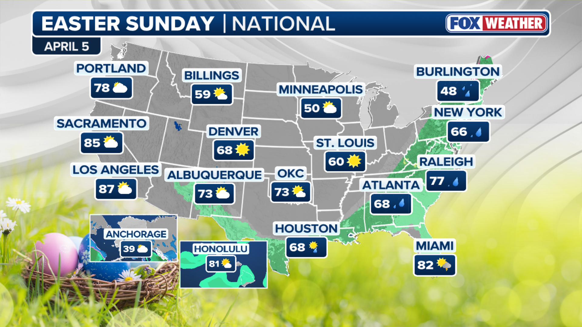 According to the FOX Forecast Center, showers are expected to begin Sunday morning from upstate New York to Georgia.