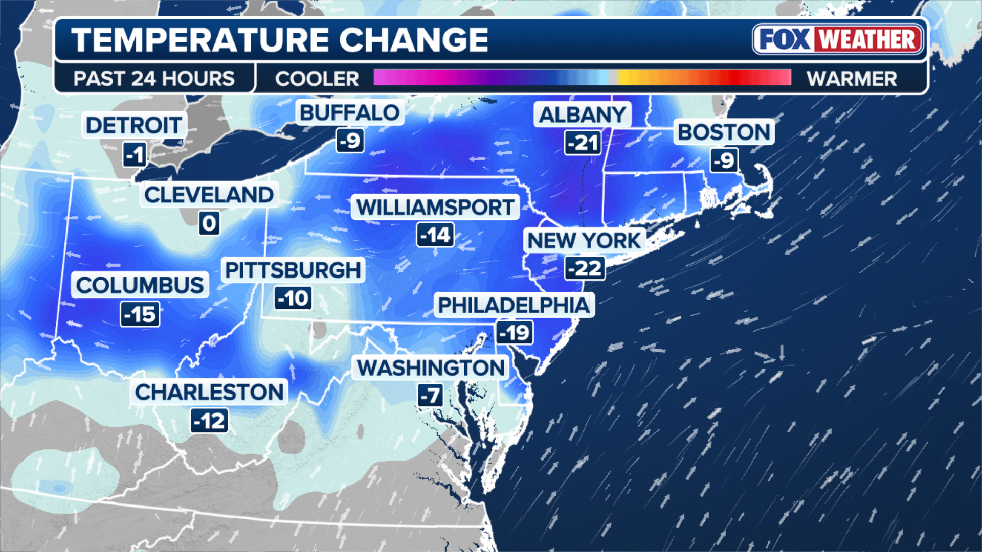 Behind the front, temperatures will drop back into the 40s and 50s across the Northeast and Mid-Atlantic, slightly cooler than seasonal averages. The cold is expected to persist into the middle of next week.