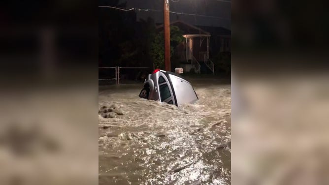 The street flooded up to mailbox level, almost four feet off the ground. In addition to the underwater car, 6 homes flooded.