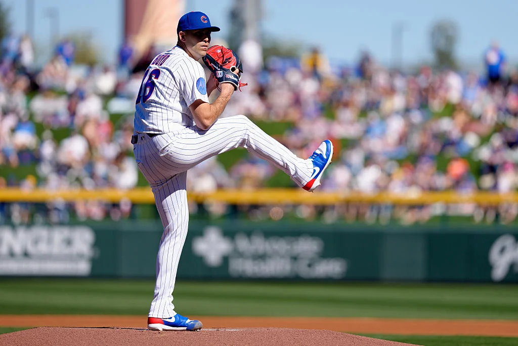 MESA, ARIZONA - FEBRUARY 21: Matthew Boyd #16 of the Chicago Cubs pitches during a Spring Training game against the Texas Rangers at Sloan Park on February 21, 2026 in Mesa, Arizona.
