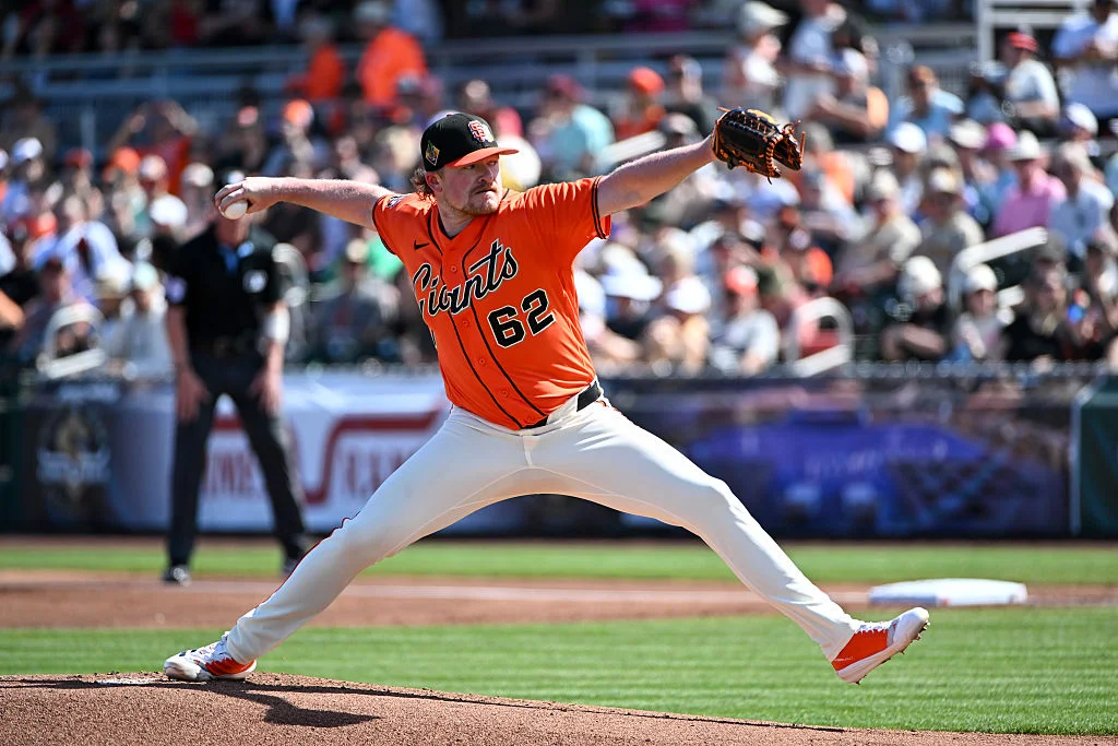 SCOTTSDALE, ARIZONA - MARCH 01, 2026: Logan Webb #62 of the San Francisco Giants throws a pitch during the first inning of a spring training game against the San Francisco Giants at Scottsdale Stadium on March 01, 2026 in Scottsdale, Arizona.