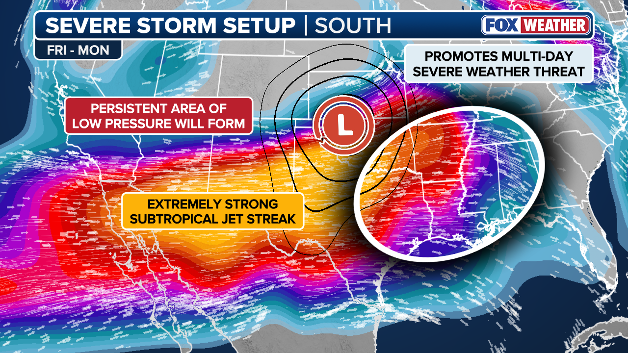 We are tracking days of severe storms that are not expected to let up anytime soon, with different systems impacting different areas in the South through at least Monday.