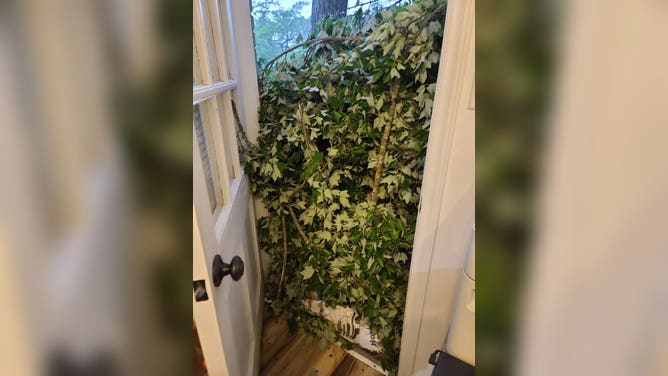 Tree lands on Garner, North Carolina home during a storm Friday. (Video: @RedTRaccoon/Twitter)