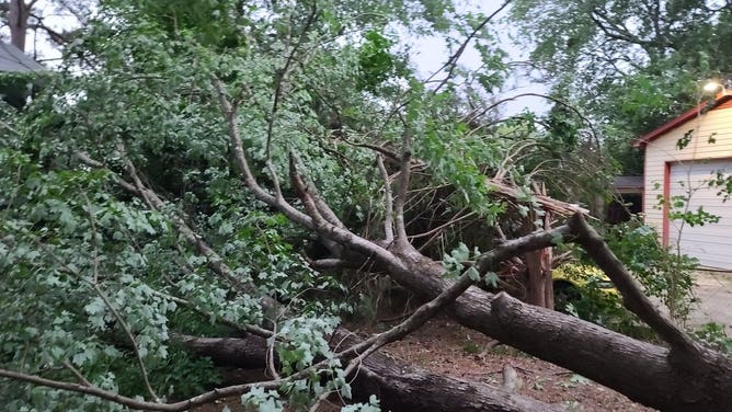 Firefighters in Winston-Salem reported multiple trees on houses and power outages. A tree damaged a garage at a home in Durham.
