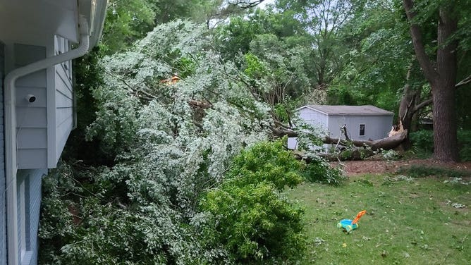 Tree falls were reported in other Virginia towns like Stewartsville, Oakville, Glenora and Willis, to name a few. A spotter in Lynchburg reported shingles were blown off roofs along with tree damage. A tree fell through the roof of a home in King William. And in Ladysmith, multiple large trees were uprooted and one damaged an outbuilding. A trampoline blew away in Franklin County.