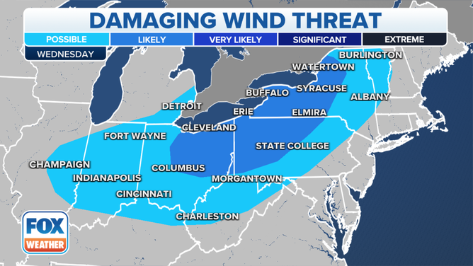 While thunderstorms are possible from Indiana to the Ohio Valley and northern New England, the highest likelihood of severe thunderstorms developing exists across central and northern Ohio, western Pennsylvania and western and central New York.