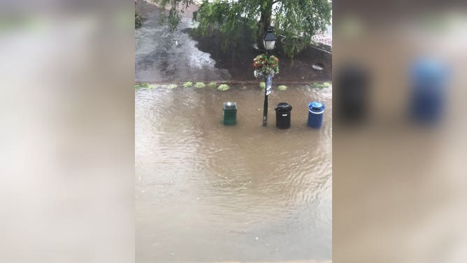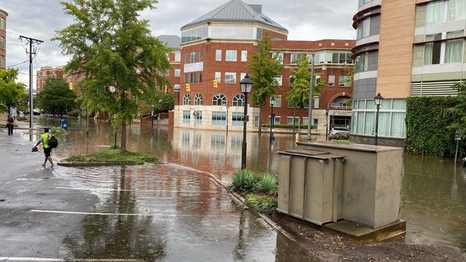Outside of D.C., in Alexandria, Virginia, heavy rain flooded streets throughout the city.