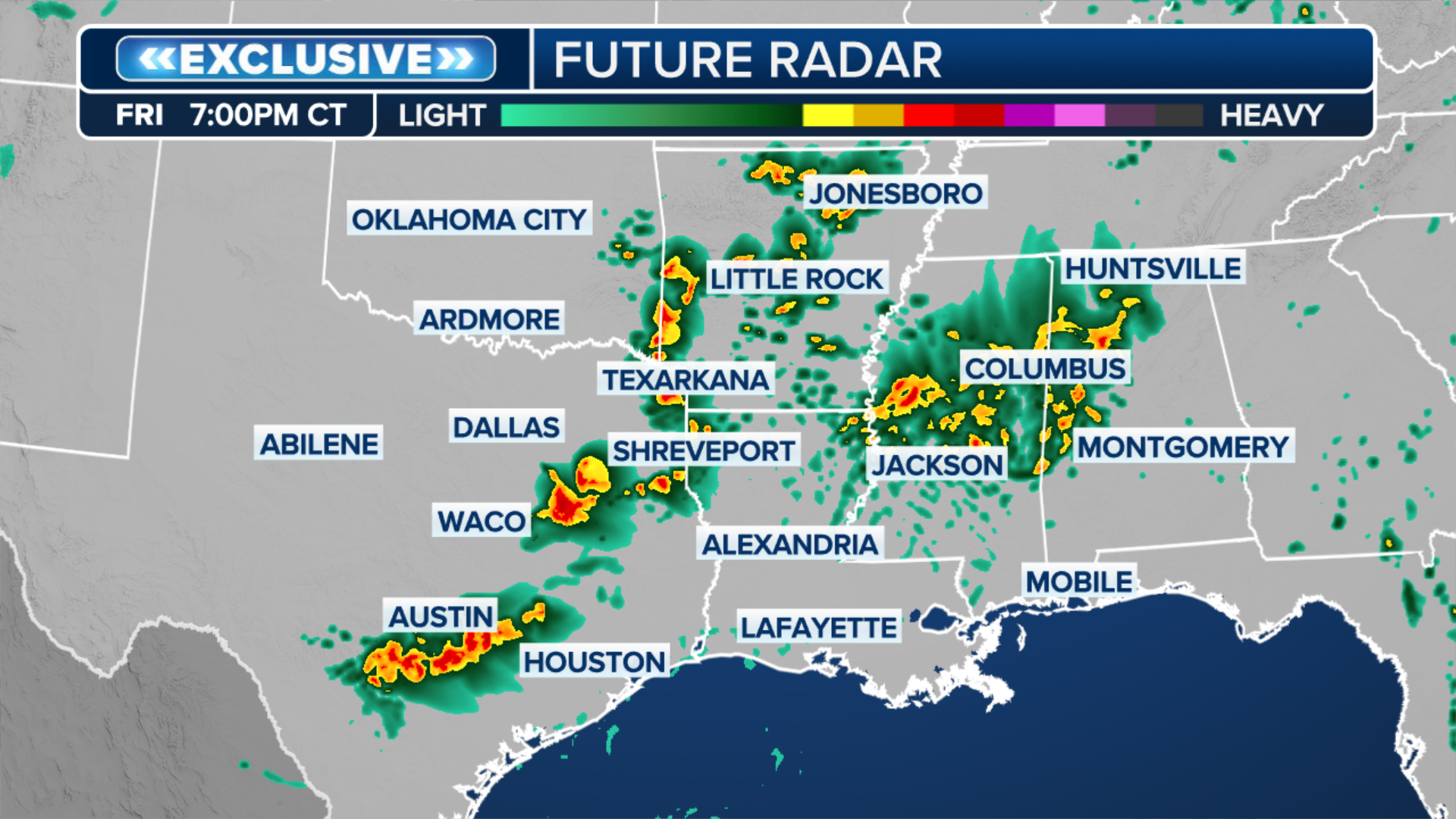 Future Radar for Friday at 7 p.m. CT(FOX Weather)
