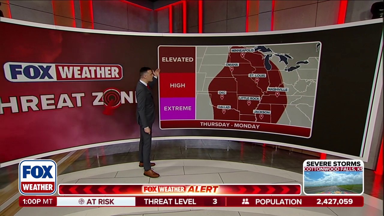 Over the next several days, millions in over a dozen states are at risk for dangerous severe storms. The exclusive FOX Weather Threat Zone is tracking what communities will be impacted and when. Stay with FOX Weather for the latest live coverage on this multi-day severe weather threat.