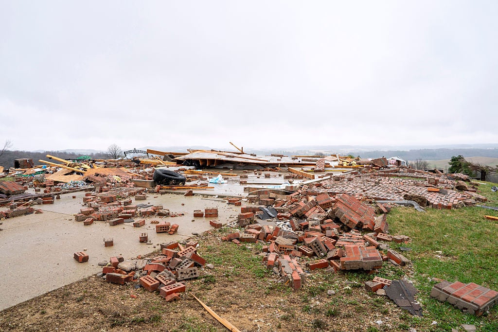 UNION CENTER, WISCONSIN - APRIL 15: Debris is scattered across the yard where a home once stood after a tornado on Tuesday near Raese Road on April 15, 2026 in Union Center, Wisconsin.