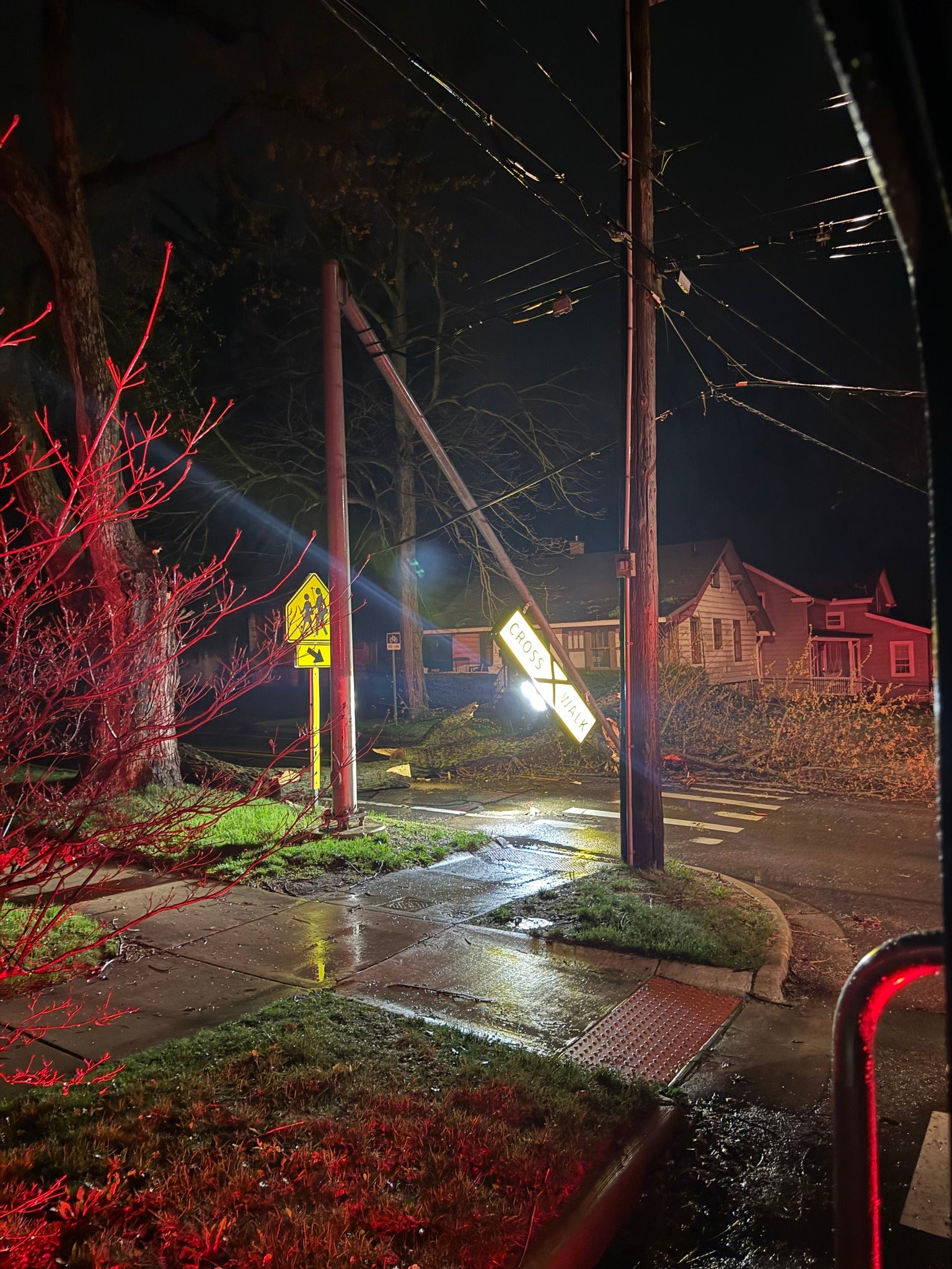 Severe weather snapped trees and power poles in Ann Arbor, Michigan Tuesday.