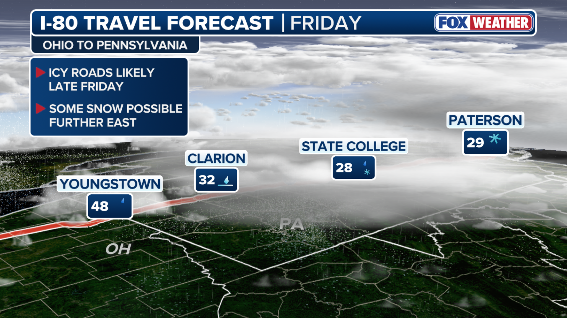 Warning travelers in the region, FOX Weather Meteorologist Ian Oliver said, "You've got to be aware these are dangerous driving conditions as that ice starts going."