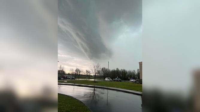 Areas around Mayfield, Kentucky, were put under a Tornado Warning by the National Weather Service around 4:30 p.m. CDT because of rotation detected in a storm cell moving through the town.