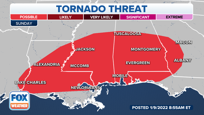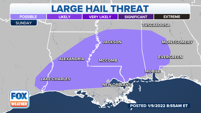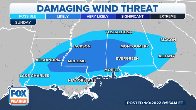 Severe storm threat for Sunday, Jan. 9, 2022.