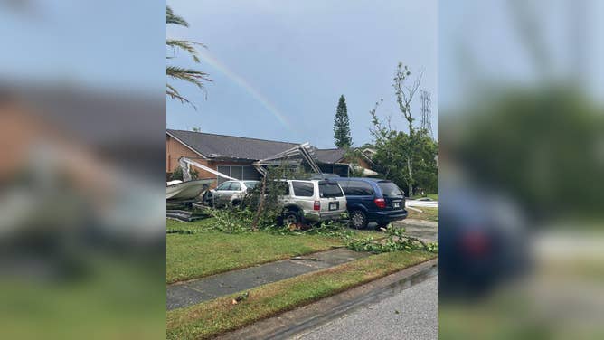 At least one business sustained damage in New Port Richey, and several cars were hit by a falling tree.