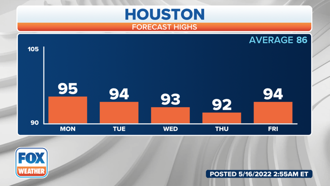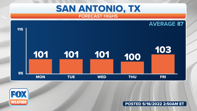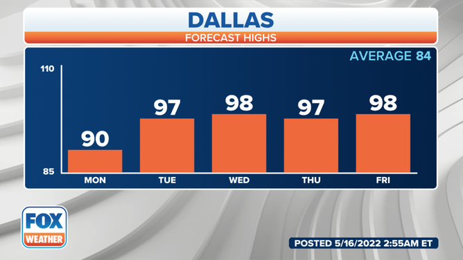 A heatwave continues to push temperatures into the upper 90s and even exceed 100 in the Lone Star State through the workweek.