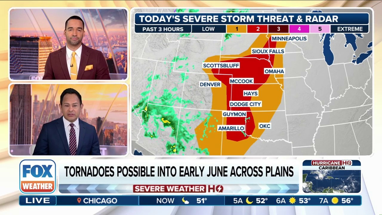 A multiday severe weather threat continues on Monday with millions of people from the Plains to the Upper Midwest on alert. FOX Weather Meteorologists Craig Herrera and Michael Estime break down the latest forecast on June 2, 2025.