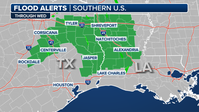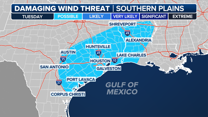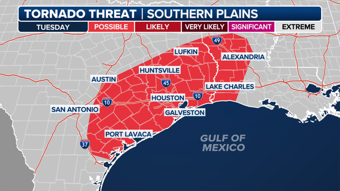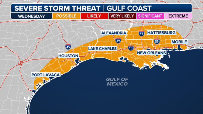 According to the FOX Forecast Center, the same weather pattern that is going to deliver above-average temperatures through much of the Lower 48 will allow for moisture to build up along the Gulf Coast, leading to an eventual flash flood and severe weather threat.