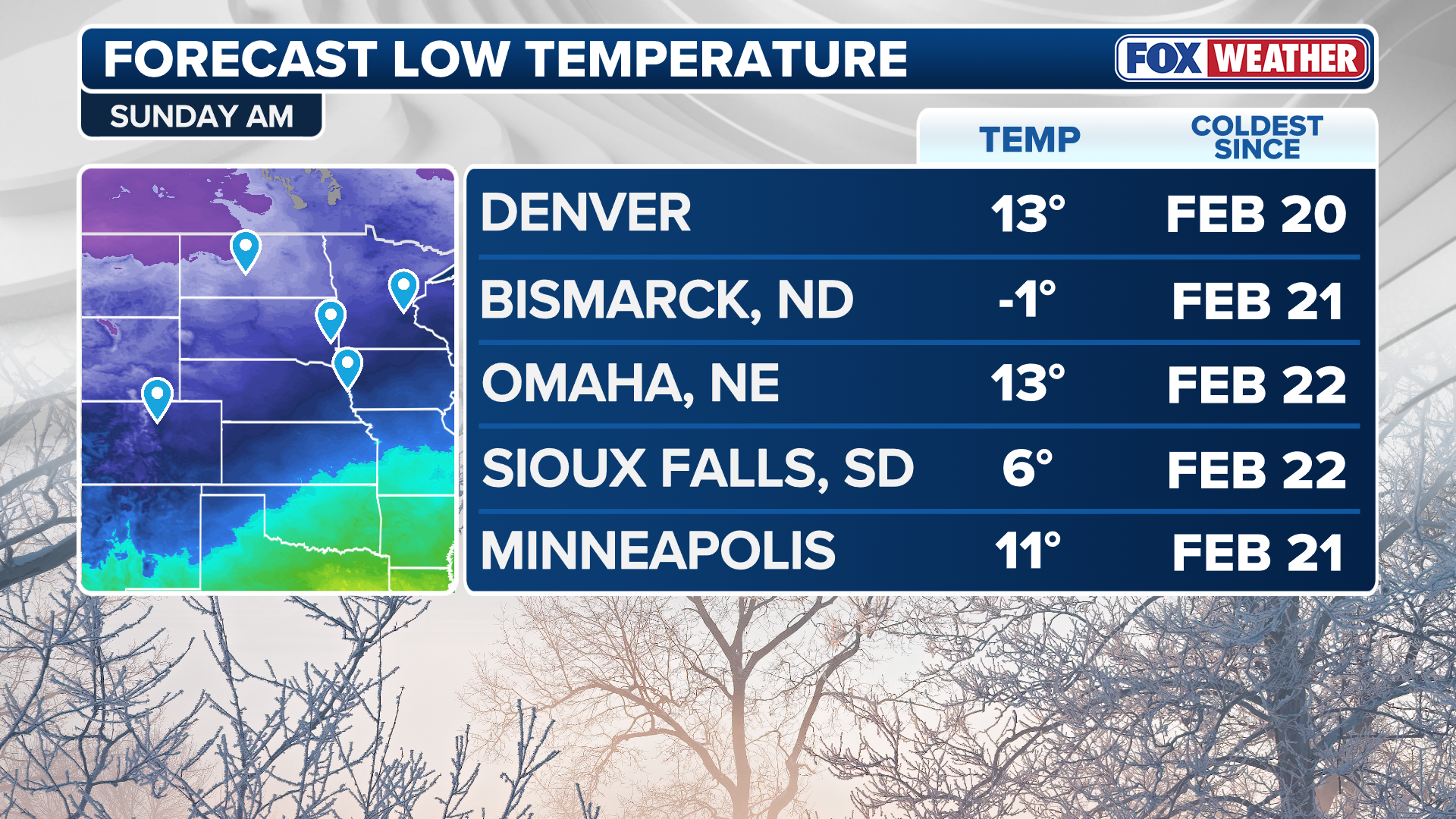 According to the FOX Forecast Center, colder temperatures will start to make their way into the Lower 48 by Wednesday across the Northern Plains and Upper Midwest, where temperatures are expected to drop 5-10 degrees below average.