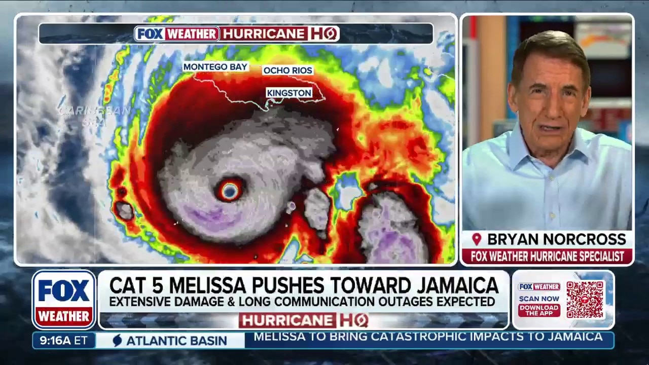 FOX Weather Hurricane Specialist Bryan Norcross provides his expert analysis on Hurricane Melissa. The Category 5 storm will bring extreme dangers of mudslides, flash flooding and storm surge to Jamaica in the next 24 hours.