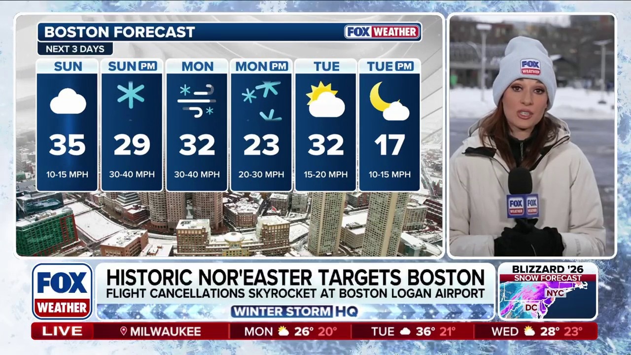 A historic nor’easter is barreling across the I-95 corridor, bringing crippling winter conditions. FOX Weather Meteorologist Melanie Black is reporting live from Boston, where 2 feet of snow is expected to fall. Stay tuned to FOX Weather for the latest updates on this paralyzing storm.