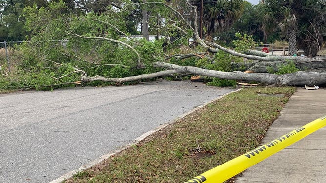 SARASOTA, Fla. – Strong thunderstorms produced damaging winds and a weak tornado in Central Florida on Wednesday afternoon, knocking over trees and leaving behind substantial damage to at least one business.