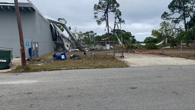 Photos from the scene near downtown Sarasota showed the twister knocked over several trees and did significant damage to an industrial building.
