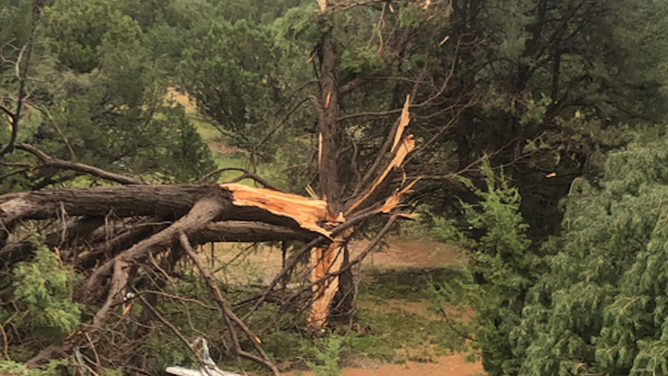 In northern Arizona, a tornado damaged a neighborhood outside of Flagstaff. Further south, a dust storm split trees and halted traffic in Phoenix.