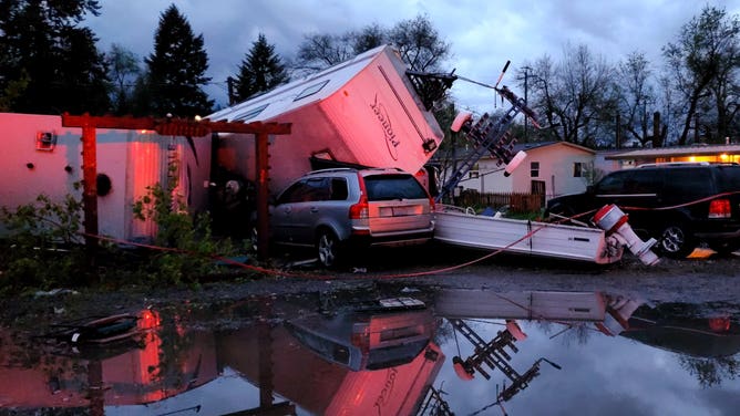 The National Weather Service in Spokane said two tornadoes formed in the area one that one touched down near I-90. They received reports of trees down and two trailers flipped.